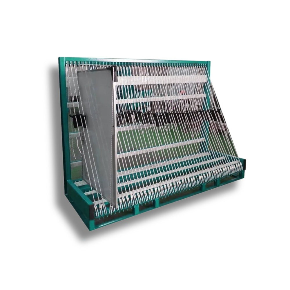 Numbered slots and replaceable dividing nylon cords and corners control glass handling, ensuring proper order matching with spacer frames during delivery to the washer.